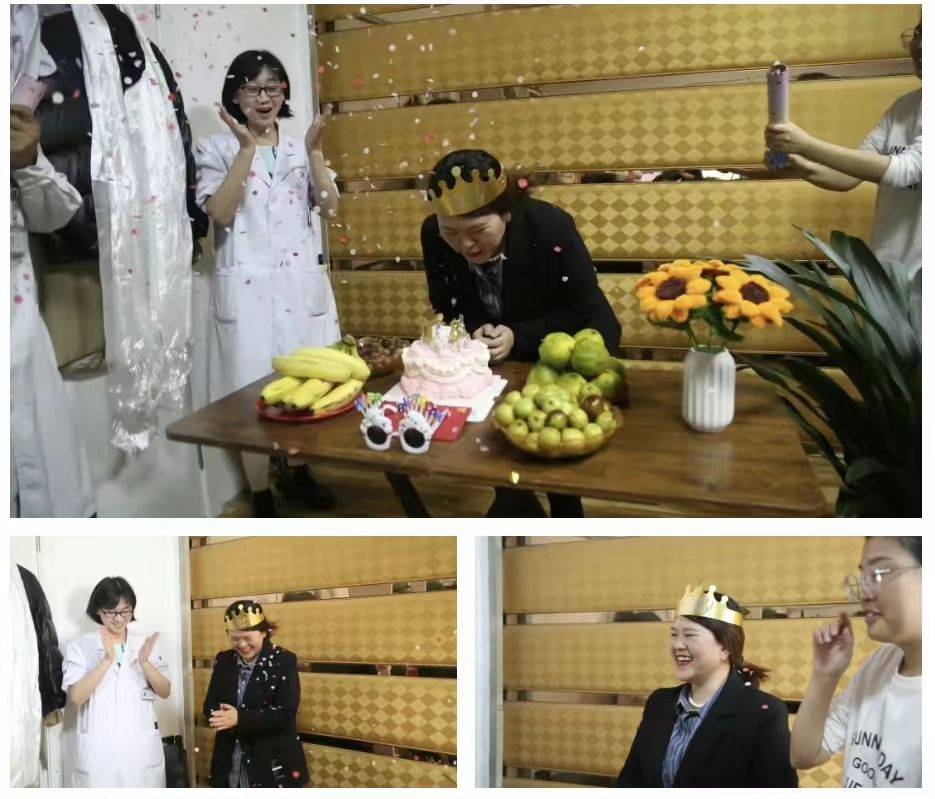 当张娇主任戴上俏皮可爱的寿星眼镜,整个现场瞬间被欢声笑语填满。希望这样轻松愉悦的方式,能让工作中严谨认真的她感受到来自团队的无限温暖与欢乐。