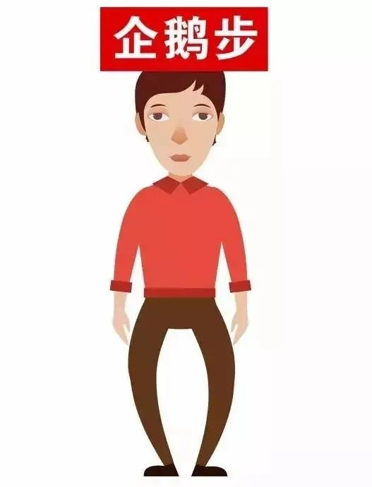 走路时,迈步像在画圈,两边膝盖常常贴在一起,互相摩擦,甚至两腿完全交叉,步态像一把剪刀一样。如果你肌肉僵硬、力量不够,就容易出现这种画圈的步态。