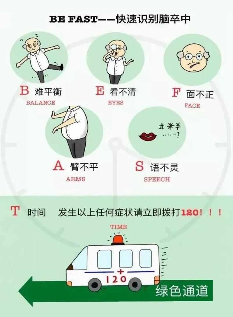 * 如果突然出现一侧肢体无力、语言障碍、嘴角歪斜则怀疑是脑卒中,则应立即拨打急救电话送医。